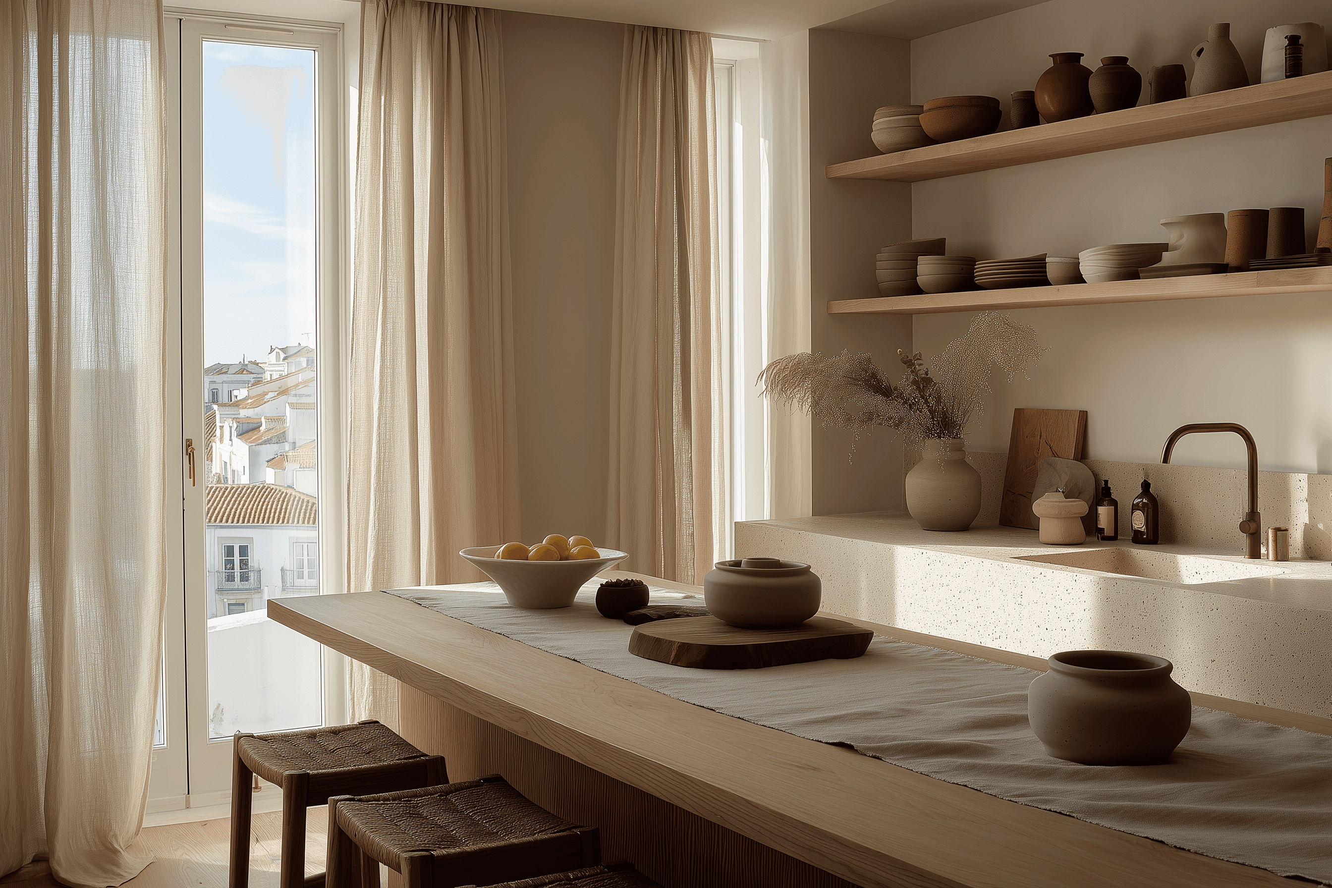 Nestled above Lisbon’s winding streets, The Willow House captures the essence of calm living through thoughtful design and natural light. Every corner is shaped by intention — from its clean architectural lines to the tactile textures of wood, stone, and linen.